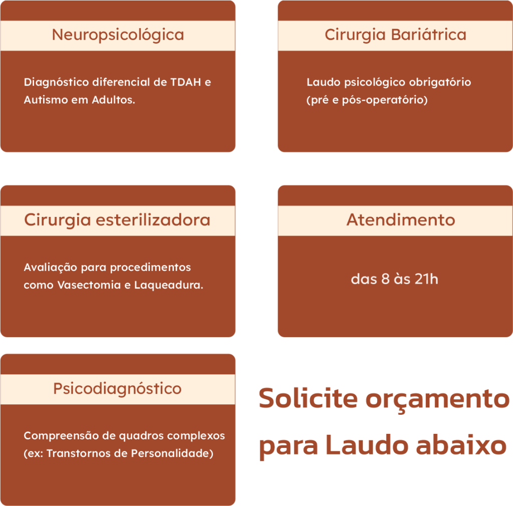 É indicada para Adultos que apresentam queixas cognitivas, emocionais ou comportamentais, ou que precisam de laudo para procedimentos específicos (ex: TDAH, Bariátrica, Porte de Arma).